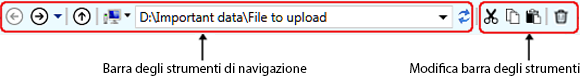 Una barra di navigazione è fornita per il PC locale e per un server remoto. Fornisce un modo semplice per spostarsi da un percorso di cartelle a un altro con un solo clic. La posizione della cartella è rappresentata come una gerarchia di cartelle. Si consideri la seguente posizione della cartella:
