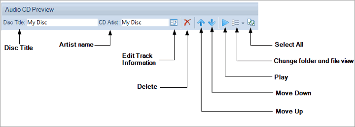 - Eliminare i file: Selezionare il file (s) da eliminare e quindi fare clic sul pulsante Elimina. Nota: l'eliminazione di file da CD audio Anteprima non fisicamente eliminare i file originali dal computer.