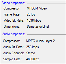 MPEG 1 compressore comprime il video senza perdita di qualità eccessiva e rende più facile per fare i CD video. Il frame rate è impostato a 25 fps e le bitrate è 1536 kbps. Dimensioni del file video di origine viene mantenuto.