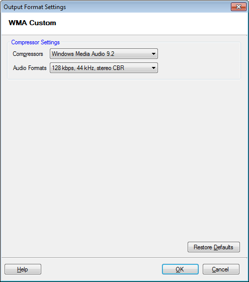 Per impostazione predefinita, il compressore audio è impostato su Windows Media Audio 9.2