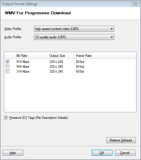 Seleziona MBR Stream, Bitrate e Mantieni i tag ID3