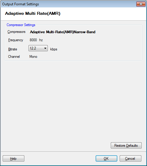 Il Adaptive Multi-Rate (AMR) stretta fascia Viene utilizzato per codificare i file audio. La frequenza è impostata su 8000 Hz E il bitrate è 12.2 Kbps. Mono Il canale audio produce file di piccole dimensioni, ma l'audio viene ascoltato ad un livello sonoro costante.
