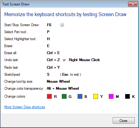 Per ulteriori informazioni su ciascuno degli strumenti Screen Draw, fare clic su Scorciatoie di schermate.