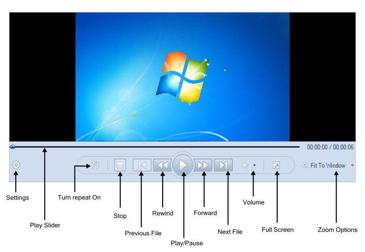 Il Stop pulsante interrompe la riproduzione del video e il cursore di riproduzione ritorna all'inizio.