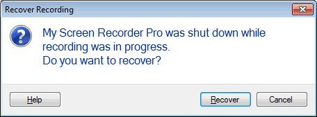 A volte, potrebbe verificarsi un errore di sistema a causa del quale l'applicazione potrebbe interrompersi improvvisamente durante la registrazione. È possibile recuperare le registrazioni dello schermo da tali situazioni. UN Ripristina la finestra di dialogo appare la prossima volta che avvii l'applicazione.