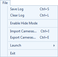 - Menu della fotocamera: Aggiungi o modifica le tue telecamere IP e le webcam.