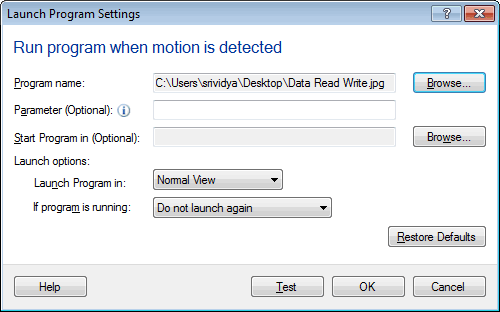L'azione Avvia programma ti consente di estendere Security Monitor Pro per soddisfare un requisito specifico. È possibile eseguire qualsiasi programma o uno script quando Security Monitor Pro rileva un movimento o una targa, che consente di eseguire qualsiasi azione che è possibile programmare per gestire il computer. È inoltre possibile inviare parametri al programma che si desidera avviare.