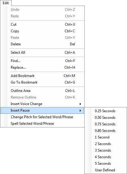 Durante la lettura di un articolo contenente più paragrafi, potresti voler interrompere la lettura per alcuni secondi e riprendere con il resto del documento per indicare informazioni importanti. Text Speaker consente di aggiungere Comando di pausa, che può essere facilmente inserito in qualsiasi posizione desiderata nel documento.Ci sono 9 durate predefinite disponibili nell'applicazione per inserire la pausa.Puoi anche aggiungere una durata diversa da quella predefinita usando il Definito dall'utente opzione.