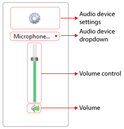 Quando si seleziona una webcam con un microfono incorporato, il suo dispositivo audio viene selezionato per impostazione predefinita. Se la fotocamera non dispone di un microfono, è possibile selezionare un altro dispositivo dal menu a discesa audio. È possibile configurare le proprietà del dispositivo audio utilizzando Impostazioni del dispositivo audio icona. Utilizzare il dispositivo di scorrimento del controllo del volume per controllare il livello audio del dispositivo selezionato.