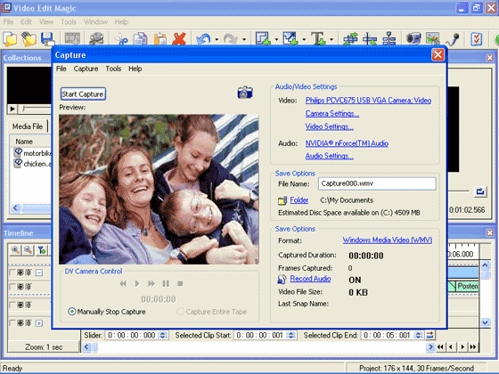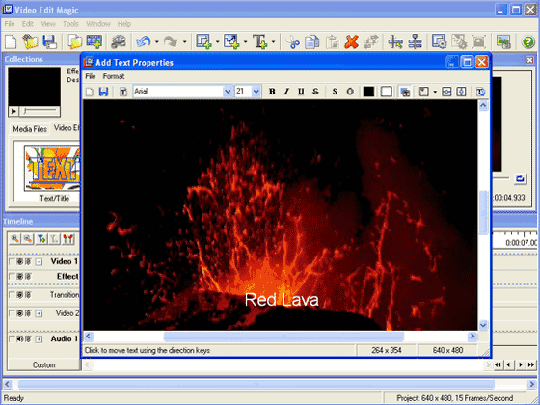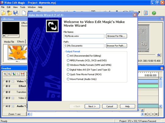 Modifica e combina i formati di file più diffusi tra cui AVI, WMV, MP3, MPEG, MOV, JPEG e molti altri, tutti sulla stessa timeline. Ciò semplifica la creazione di qualcosa di veramente unico da più fonti multimediali. Video Edit Magic può modificare direttamente file AVI, MPEG (1 e 2), DVD video e WMV - non è necessario prima convertirli in un altro formato.