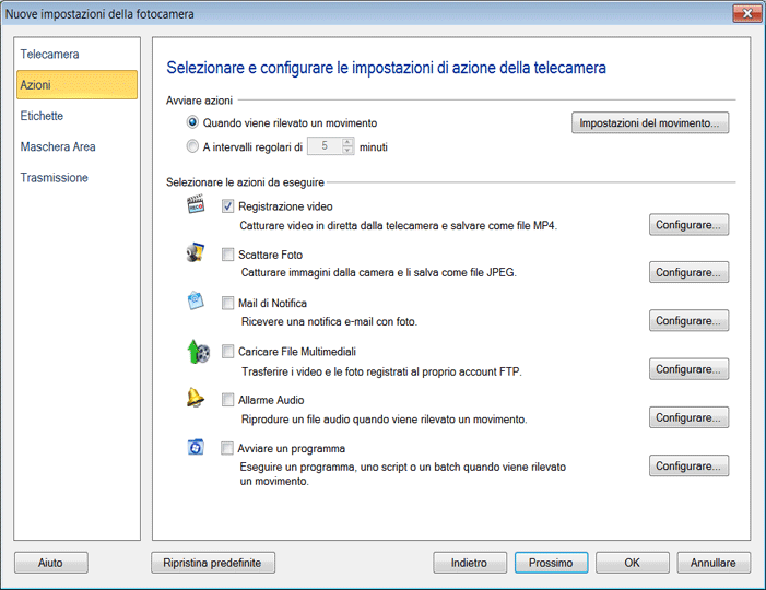 | Buffers Video Feed, in modo che le registrazioni inizino prima che il movimento sia rilevato |