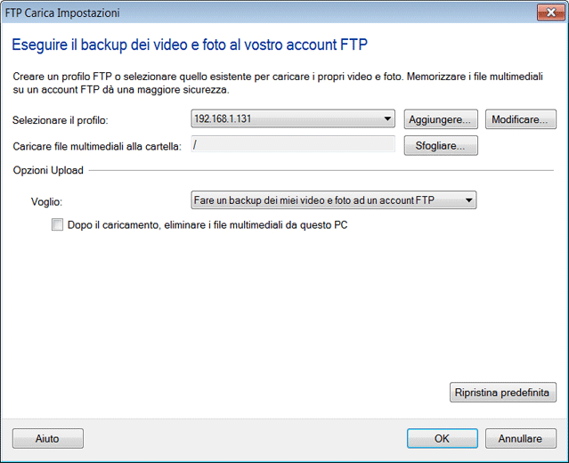 | Regolare la qualità video (dimensione frame, velocità frame) |