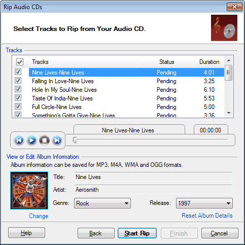 • Ripar CDs de áudio; Olha e salvar informações de artista, álbum e música.