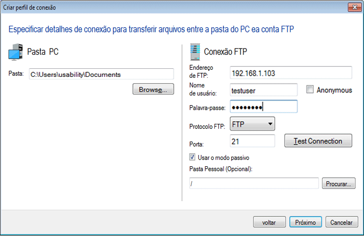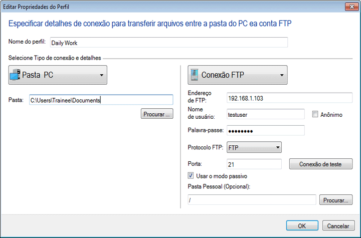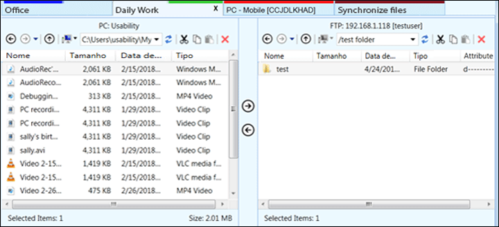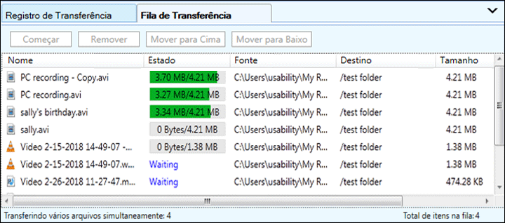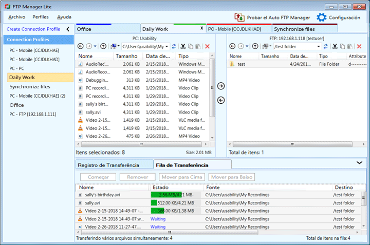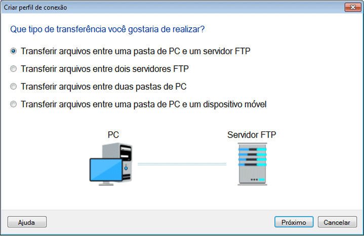 - Transfira arquivos e pasta entre: PC para FTP ou PC para PC