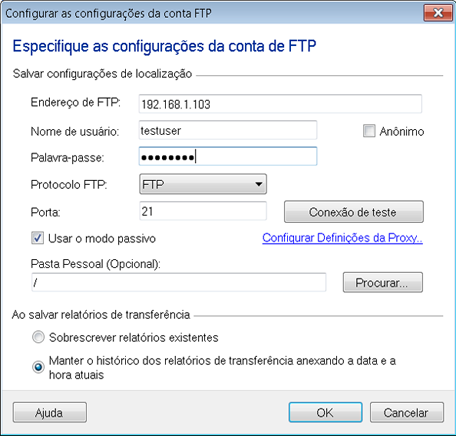 Um local remoto é sempre a opção mais segura para salvar os dados importantes.Seu relatório de transferência pode ser salvo no servidor FTP.Você só precisa especificar seus detalhes de conexão FTP e seu relatório de transferência está protegido.Os detalhes da conexão FTP incluem o nome do servidor ou o endereço FTP, nome de usuário, senha, número da porta e pasta de destino no servidor.