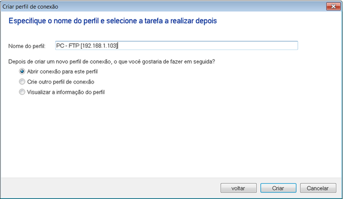 Você deve começar criando um Perfil para cada servidor FTP com o qual você estará trabalhando.Um perfil contém as informações necessárias para se conectar ao servidor.