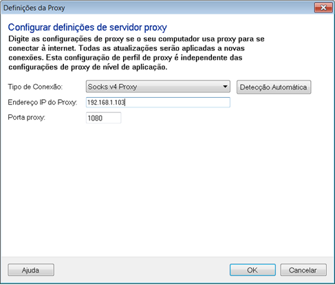 - Altere automaticamente o tipo de conexão para Conexão Direta se o Servidor Proxy for usado.