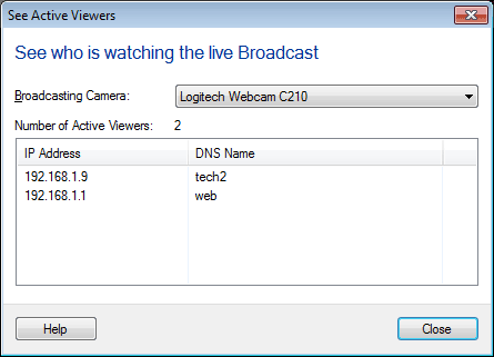 Para ver o status atual das transmissões de vídeo ao vivo sendo enviadas de WebCam Monitor, clique em Ver >> Quem está vendo transmissão.