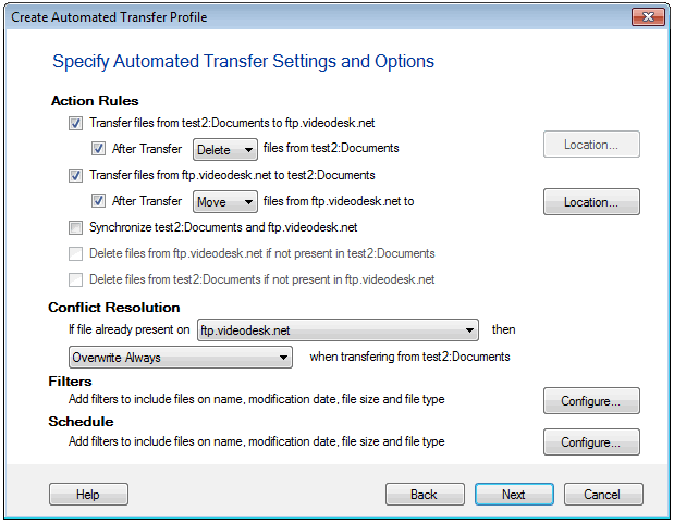 Para adicionar regras de ação diferentes para o seu perfil de transferência automatizado, o perfil de clique direito e selecione Editar perfil >> regras de transferência. Você pode especificar qualquer uma ou todas as seguintes regras de ação: