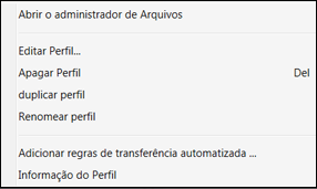Você pode executar operações rápidas em um perfil, simplesmente clicando com o botão direito do mouse no perfil e selecionando uma das opções.