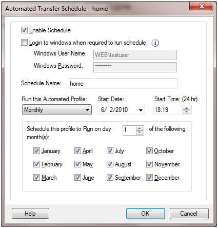 | Auto FTP Manager: Criando um perfil agendadas | Criando um perfil agendadas Para criar um Programado perfil , Você deve agendar uma Automated Transfer Profile enquanto ele está sendo criado, ou agendar uma existente Automated Transfer Profile. Para agendar uma Automated Transfer perfil enquanto ele está sendo criado em: