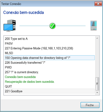 Se você não conseguir se conectar usando as configurações atuais, o assistente Test FTP Connection irá:
