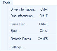 - Menu Ferramentas: Ferramentas úteis para trabalhar com CD e DVD.
