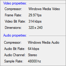 Por padrão, o Bitrate codificado é fixado em 314 Kbps e taxa de quadros em 29.97 Fps. O tamanho do ficheiro de saída será o mesmo que o ficheiro original após a conversão.