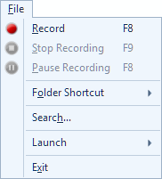 - Excluir: exclua permanentemente o arquivo selecionado da pasta de gravação.