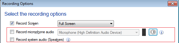 Você também pode incluir os sons dos alto-falantes do computador. Por exemplo, se quiser capturar a sua música favorita no PC durante a gravação do seu ecrã, pode selecionar Gravar áudio do sistema (alto-falantes)