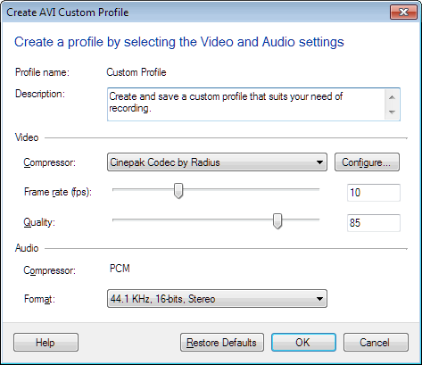 - o Taxa de quadros é o número de vezes que uma imagem de vídeo é atualizada por segundo.Baixas taxas de quadros podem fazer um movimento rápido na tela parecer abrupto.As altas taxas de quadros podem fazer com que o vídeo fique embaçado se a taxa de bits for muito baixa.Para a maioria das aplicações de captura de tela, as taxas de quadros entre 5 e 10 fps são altas o suficiente.Se você estiver gravando movimento rápido ou capturar reprodução de vídeo, a qualidade pode ser melhorada aumentando o valor da taxa de quadros.Em um arquivo AVI, o aumento da taxa de quadros resulta em um aumento no tamanho do arquivo. Este não é o caso quando a gravação é feita no formato WMV.