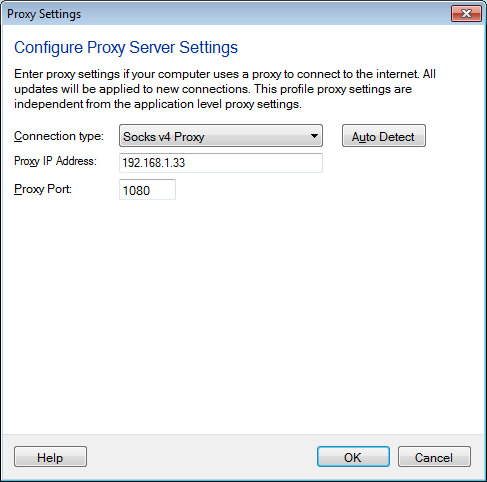 Um Servidor Proxy permite que você se conecte ao servidor-alvo usando-o como uma camada intermediária. Ele encaminha seus pedidos para o servidor-alvo e retorna a resposta para você. My Screen Recorder Pro permite que você se conecte através de meias de proxy 4 e 5, HTTP ou conexão de proxy FTP. Se você estiver atrás de um servidor proxy, configure essas configurações no aplicativo, para se conectar ao seu servidor de FTP.