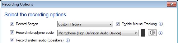 Clique Arquivo >> Registro >> Opções de gravação >> Região personalizada.
