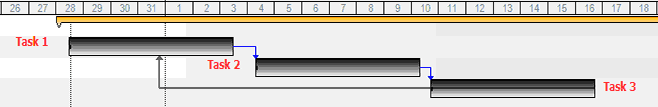 - Tarefa 1 é dependente Tarefa 2 que é dependente Tarefa 3 (Veja a figura acima). Neste caso, você não pode criar uma dependência de tarefa Tarefa 3 a Tarefa 1.