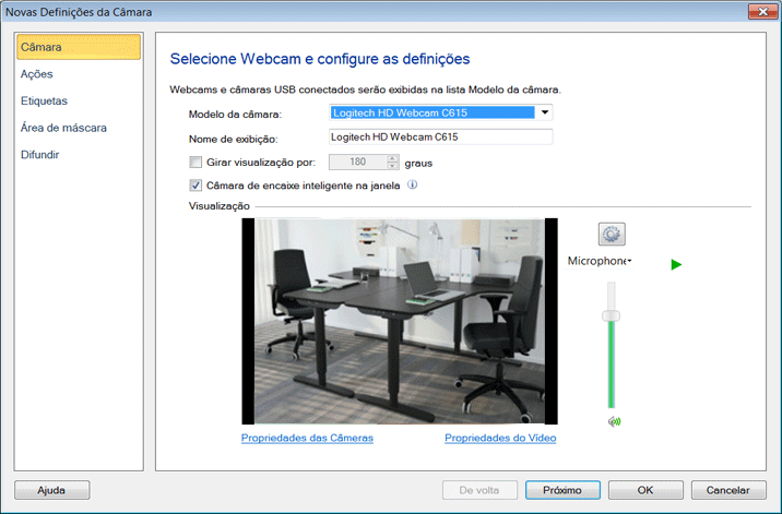 | Ajuste as propriedades de vídeos e câmeras de webcams individuais |