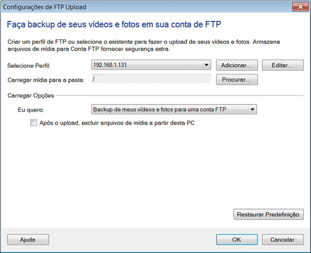 | Carregar vídeos e fotos para um servidor |