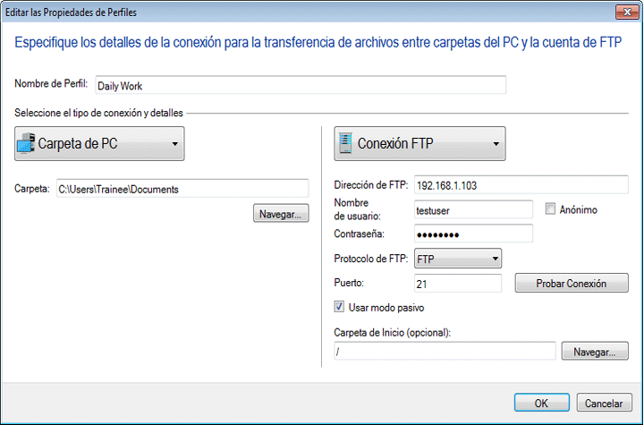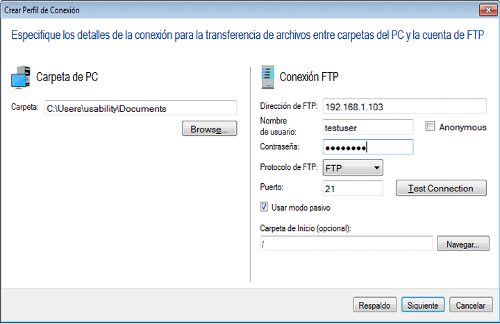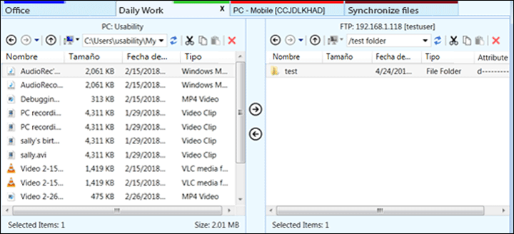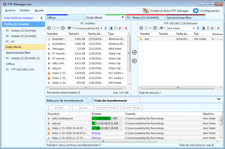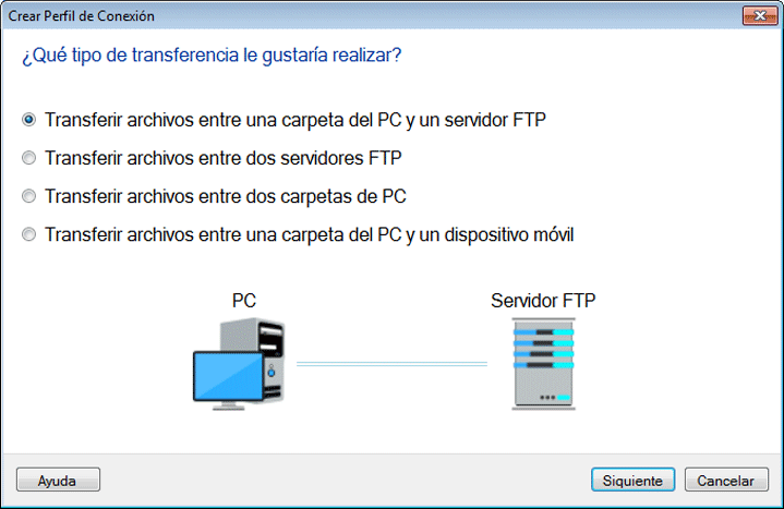 - Transfiera archivos y carpetas entre: PC a FTP o PC a PC