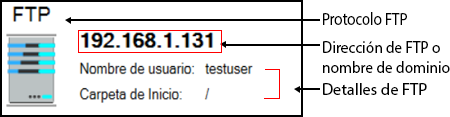 - FTP: Esta sección mostrará los detalles de conexión, como el protocolo FTP, la dirección FTP o el nombre de dominio, la ubicación de la carpeta.