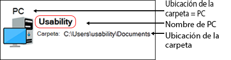- ordenador personal: Mostrará el nombre de su PC y ubicación de la carpeta.