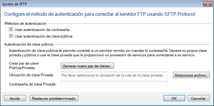Contraseña de clave privada: Si la clave privada está protegida con contraseña, especifique la contraseña correspondiente.