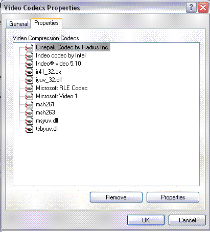 En el Codec Video / Audio propiedades de la ventana, seleccione la opción "Propiedades" en la parte superior. Desde aquí puedes ver todos los codecs que se instalan. Usted puede optar por quitar un códec determinado completamente o verificar el estado Codec desde esta ventana.