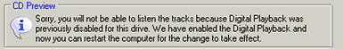 Nota: Si se ha desactivado la reproducción de CD digital, se muestra el siguiente mensaje (el mensaje es visible en Windows 2000 / XP):