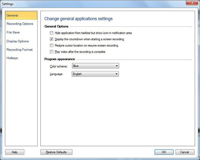 Para ejecutar la aplicación en segundo plano sin indicar que se está realizando la grabación, use Ocultar la aplicación de la barra de tareas pero mostrar el icono en el área de notificación opción.La aplicación cuando se minimiza no aparece en la barra de tareas, sino como un icono de la bandeja del sistema. Puede acceder a las funciones principales, como grabar, pausar, reanudar y detener desde la bandeja del sistema sin tener que acceder a la interfaz de usuario de la aplicación principal. Puede restaurar la ventana de la aplicación en cualquier momento simplemente haciendo doble clic en el icono de la bandeja del sistema.
