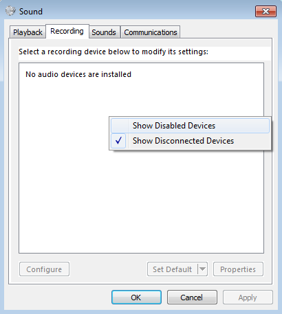1. Haga clic derecho y seleccione Mostrar dispositivos desactivados.
