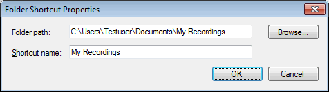 Todos los archivos multimedia están organizados en carpetas.Cuando se inicia la aplicación, se crea una carpeta con el nombre "Mis grabaciones" en "Mis documentos". Cuando crea una grabación de pantalla, de forma predeterminada se guarda en la carpeta "Mis grabaciones". Puede crear un acceso directo de carpeta a cualquier carpeta que esté presente en su PC.