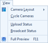 - Vista previa completa: vea solo las vistas previas de la cámara ocultando la barra de menús y la barra de herramientas.