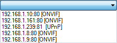 Al abrir el Nueva configuración de la cámara diálogo, Security Monitor Pro comenzará a buscar las cámaras IP ONVIF y UPnP presentes en su red. Todas las cámaras detectables automáticamente se enumerarán en el Camaras encontradas lista desplegable como se muestra a continuación: