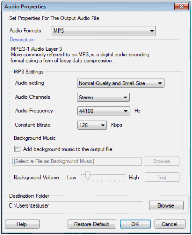 • Canales de audio: Estéreo y Estéreo conjunto son las dos opciones disponibles en Canales de audio desplegable. Joint Stereo se puede usar cuando desee producir archivos de audio de muy alta calidad. Comprime los archivos de audio y ahorra espacio de almacenamiento. Sin embargo, el estéreo es apropiado para ser utilizado cuando establece la calidad como baja o normal.