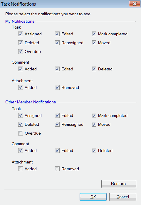 Compruebe el Mostrar notificaciones de proyectos opción. En el cuadro de diálogo Proyecto Notificaciones, puede seleccionar si desea que se le informe cuando se añaden a y / o retirada de un proyecto, así como si su papel en el proyecto ha cambiado.