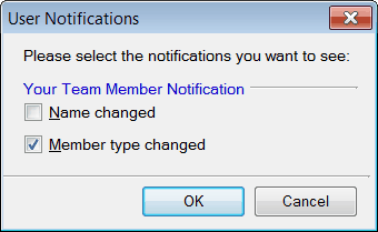 Cuando se selecciona la notificación del usuario, Team Task Manager le avisa si el nombre de usuario o tipo de miembro que se haya cambiado.